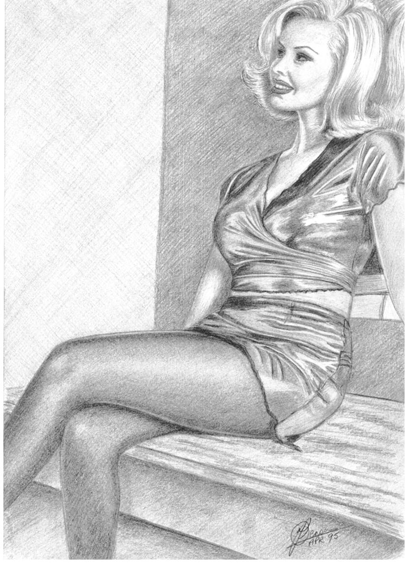 My drawing for this post is of Kimberley Davies who found brief fame in the early ’90’s in Austrailian soap Neighbours. I was never a fan of the series but found this pose by Kimberley ideal for my portfolio.