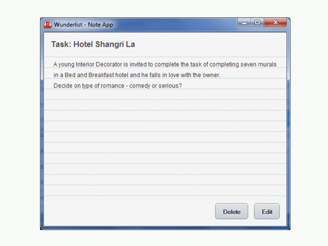 Clicking on an individual part of a Task (or in this case the title of the particular Short Story), produces another screen.  Here the user can list as much detail as required.  In my Short Stories listings, not surprisingly I’m using this for each synopsis.