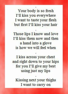 My erotica poetry started out like sexual foreplay. The hints were in there, a bit of teasing of what might come, and I took it forward with visual appreciation, dialogue, romance, titillation, and finally action. I received several compliments on my efforts and I was glad I’d tried.