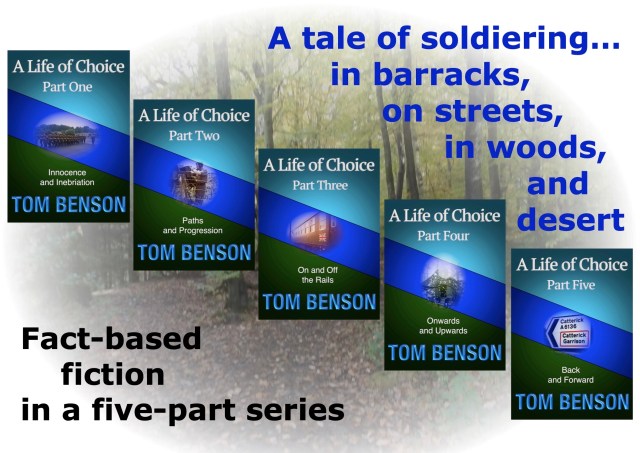 The initial covers have been designed and produced by me. If you are not ex-military and you’re wondering what the three background colours indicate – they are the ‘Corps colours’ of the Royal Corps of Signals. There is a brief explanation in the early part of the story. I’ve used graphics and sub-title as I judged what would be appropriate for each stage of the journey.