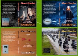 My eBook collections contain at least twelve stories but some are guest submissions from other authors. To avoid legal issues, I only used short stories I have written. I mixed the genres to create a set of four paperback volumes of twenty stories each. The books have a front cover depicting one of the stories and a miniature graphic on the back which depicts another story in the same book.
